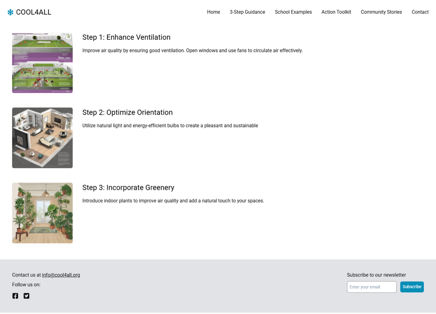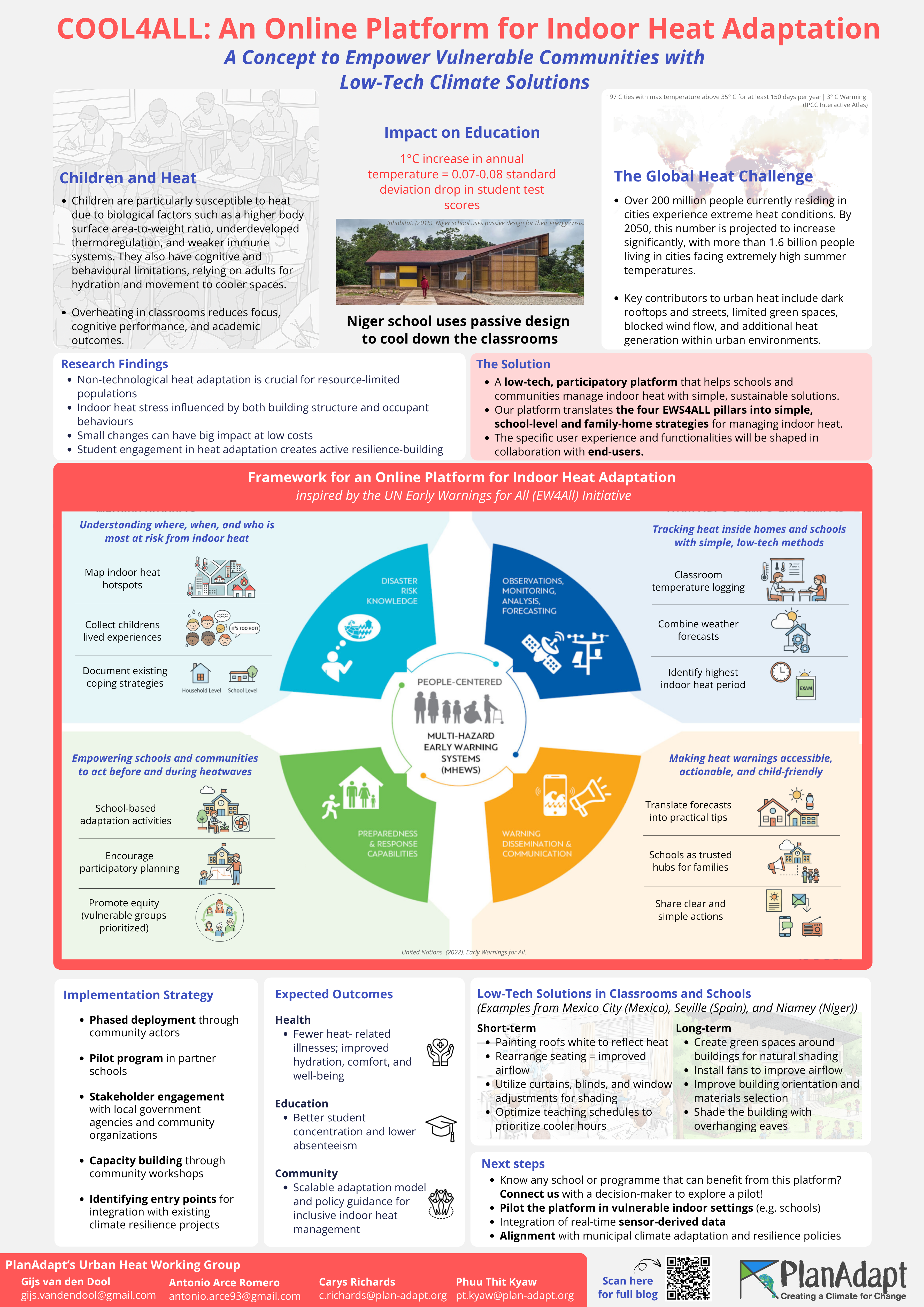 COOL4ALL is an emerging concept for a low-tech, online platform designed to provide personalized, practical guidance to help individuals adapt their indoor spaces to extreme heat. Inspired by the UN’s Early Warnings for All (EW4All) Initiative, the platform applies the same principle of timely, locally relevant and actionable information – but in the context of adaptation rather than early warning. Its goal is to make indoor heat adaptation both intelligible and achievable, bridging the gap between research evidence and lived experience.