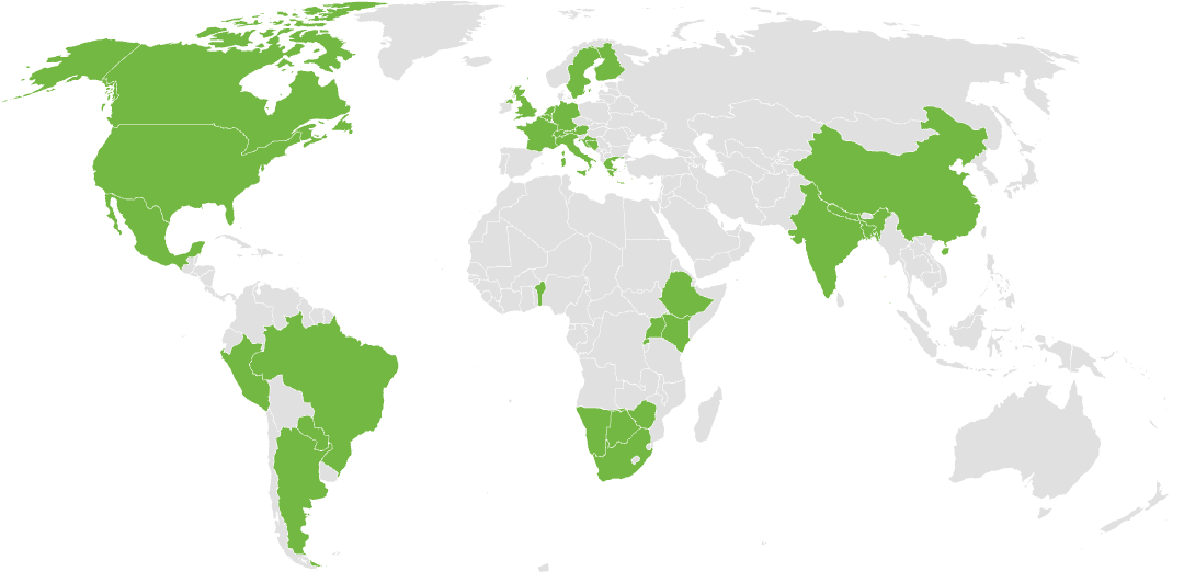 PlanAdapt is a transdisciplinary team of highly committed and passionate climate resilience and climate risk specialists across the globe. We cover a large range of disciplines and backgrounds. While PlanAdapt is a registered not-for-profit organisation in Germany, our team, however, is spread across the world and has not only working experience but is based in over 40 countries (see also the maps below). Growing as a lean organisation, we take a trajectory of an organisation without office spaces. Entrepreneurial PlanAdapt Fellows are gradually developing plans to establish affiliates in their respective countries, see e.g., Climate Adaptation Research & Consulting in Rwanda,